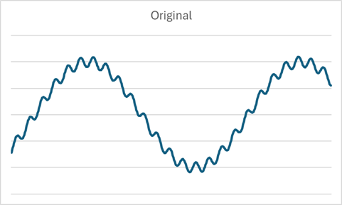 元の波形には30Hzの正弦波に500Hzのノイズが含まれています
